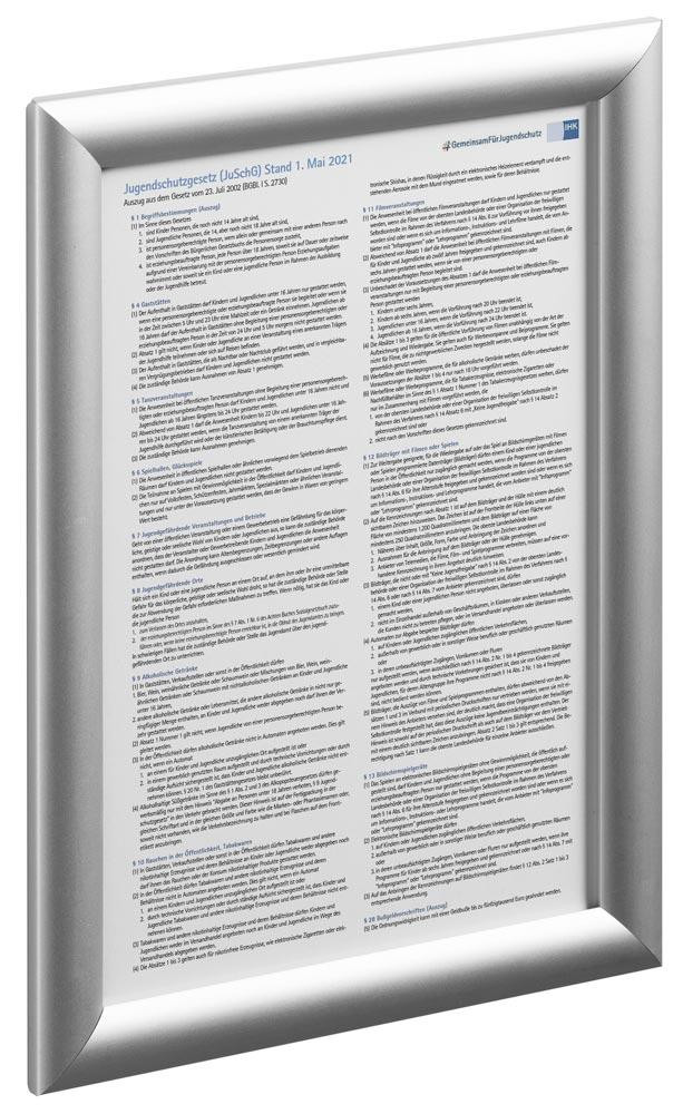 ∙ Robuster DIN A4 Aluminium-Klapprahmen, silber eloxiert ∙ Schneller und einfacher Motivwechsel durch bewährte Klapptechnik ∙ Reflexionsarme, UV-beständige Schutzfolie ∙ Schlagfeste Rückwand aus Polystyrol ∙ Ecken auf Gehrung geschnitten ∙ Verdeckte Wandmontagebohrungen zum Anschrauben oder Abhängen oder permanente Anbringung durch beiliegende Selbstklebestreifen ∙ Anbringungsmöglichkeit für die Nutzung im Hoch- oder Querformat ∙ Inkl. Montagematerial bestehend aus Schrauben, Dübel und vier Selbstklebestreifen