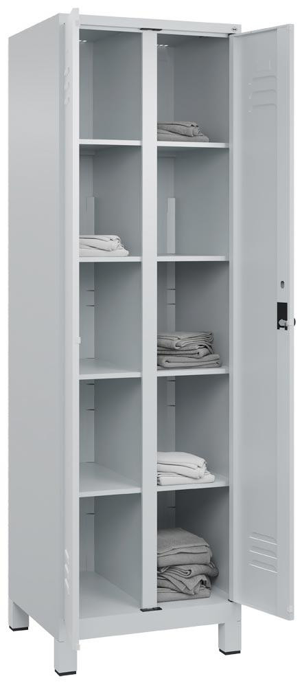 Kombischrank Premium, BxTxH 600x500x1950 mm, 2 Abteile a 300 mm, mit Füßen, Drehriegel, RAL 7035