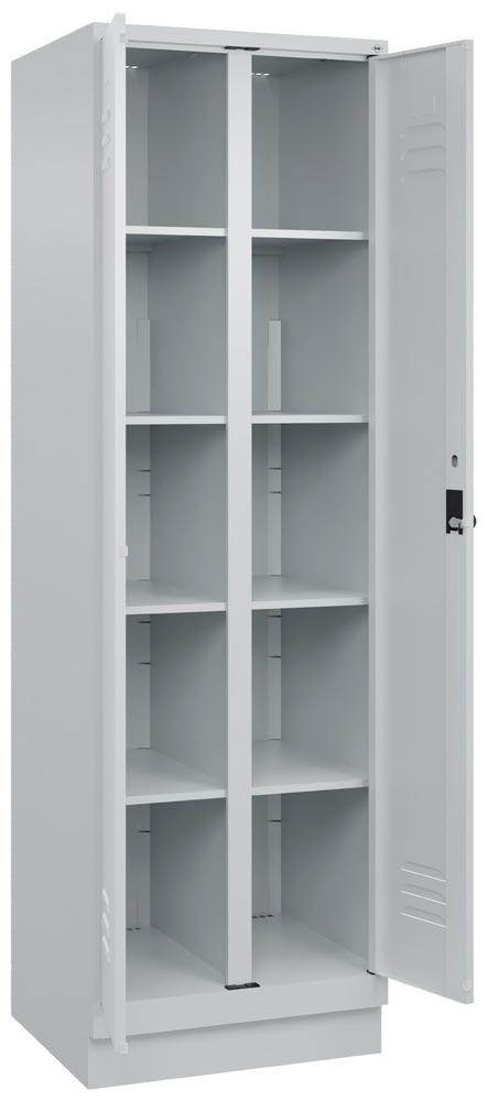 Kombischrank Premium, BxTxH 600x500x1950 mm, 2 Abteile a 300 mm, mit Sockel, Drehriegel, RAL 7035