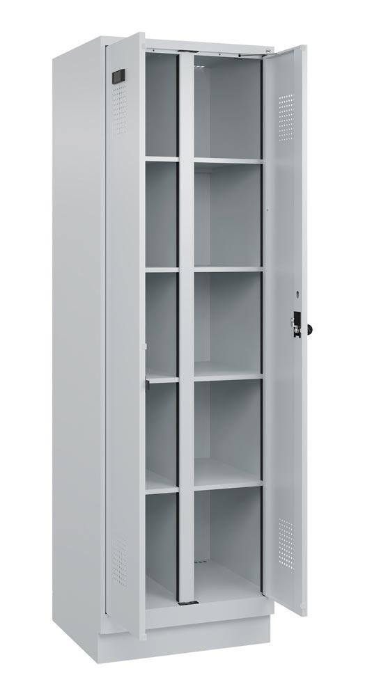 Kombischrank Premium Plus, BxTxH 600x500x1950 mm, 2 Abteile a 300 mm, mit Sockel, Drehriegel, RAL 7035