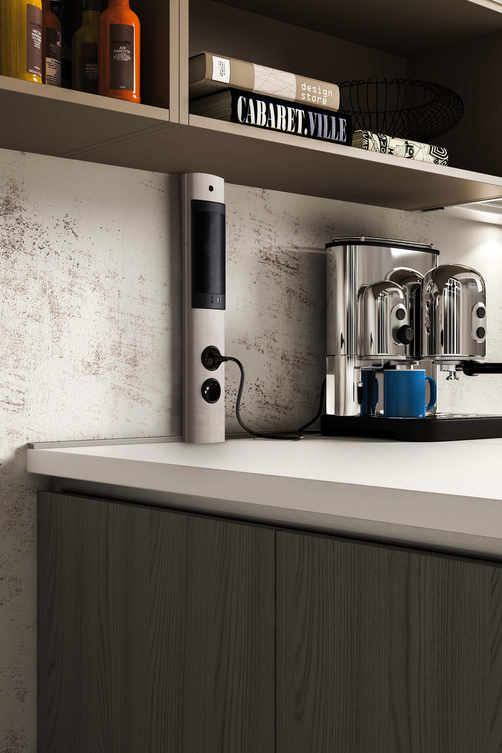 Integrierter Lautsprecher, Bluetooth-Verbindung für Audiowiedergabe, USB-Port zum Laden von Smartphnes etc., Vertikale Montage unter Wandschränken, Regalen oder an Nischnrückwänden, Höhenverstellbar, Doppel-Schuko Steckdose