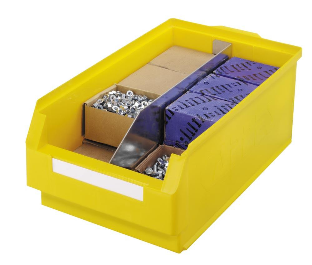 Zusätzliches Unterteilen der Sichtlagerkästen mit Längsteilern aus Stahlblech für die Größen 1 - 4