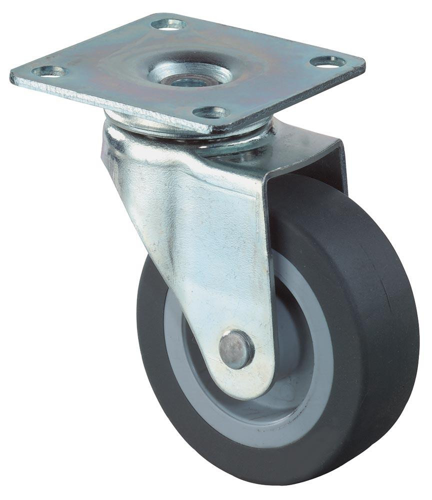 Lenkrolle, Gummi, schwarz, Durchm. 25 mm, Traglast 15 kg, Anschraubplatte, für harte Böden, VE 8 Stück