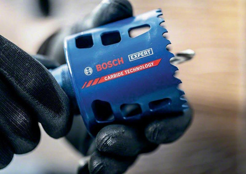 lange Lebensdauer beim Schneiden von Löchern in verschiedenen Materialen · mit Bosch Carbide Technology · perfekte Schnittform · ideal für schwere Aufgaben · einsatzbar in Holz, Metall, Edelstahl, Ziegelstein, weiche Fliesen und verstärkte Kunststoffe · zur Verwendung mit dem Power Change Plus-Schnellspann-Adapter