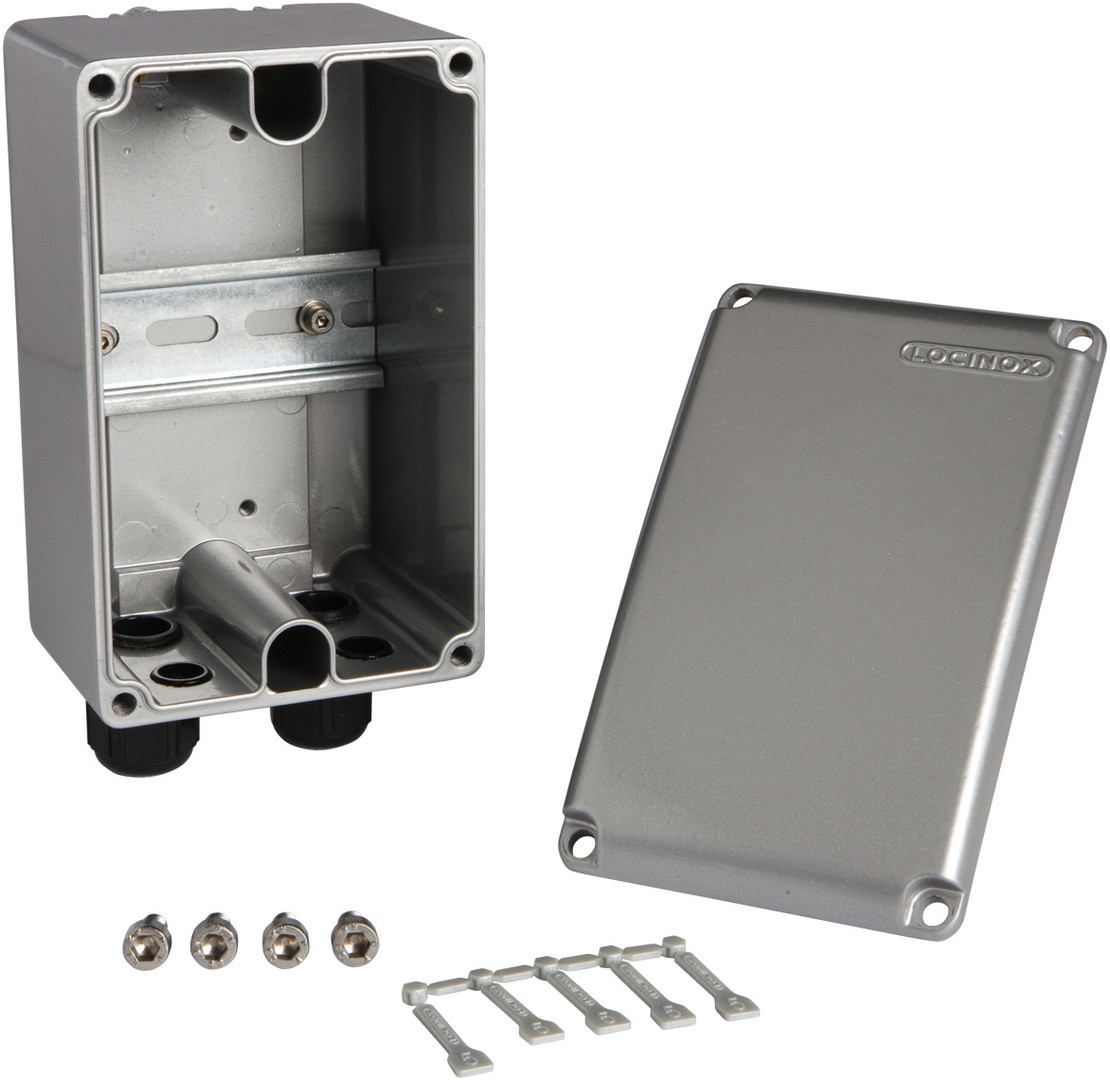 • Aluminium pulverbeschichtet • DIN-Rail 86 mm breit (fünf Einheiten) • Quick-Fix Befestigung • Mit Wärmeabfuhr • Wasserbeständig • Schutzklasse IP66 • Inkl. zwei Spannhülsen M 20 und zwei Abschlusskappen M 16