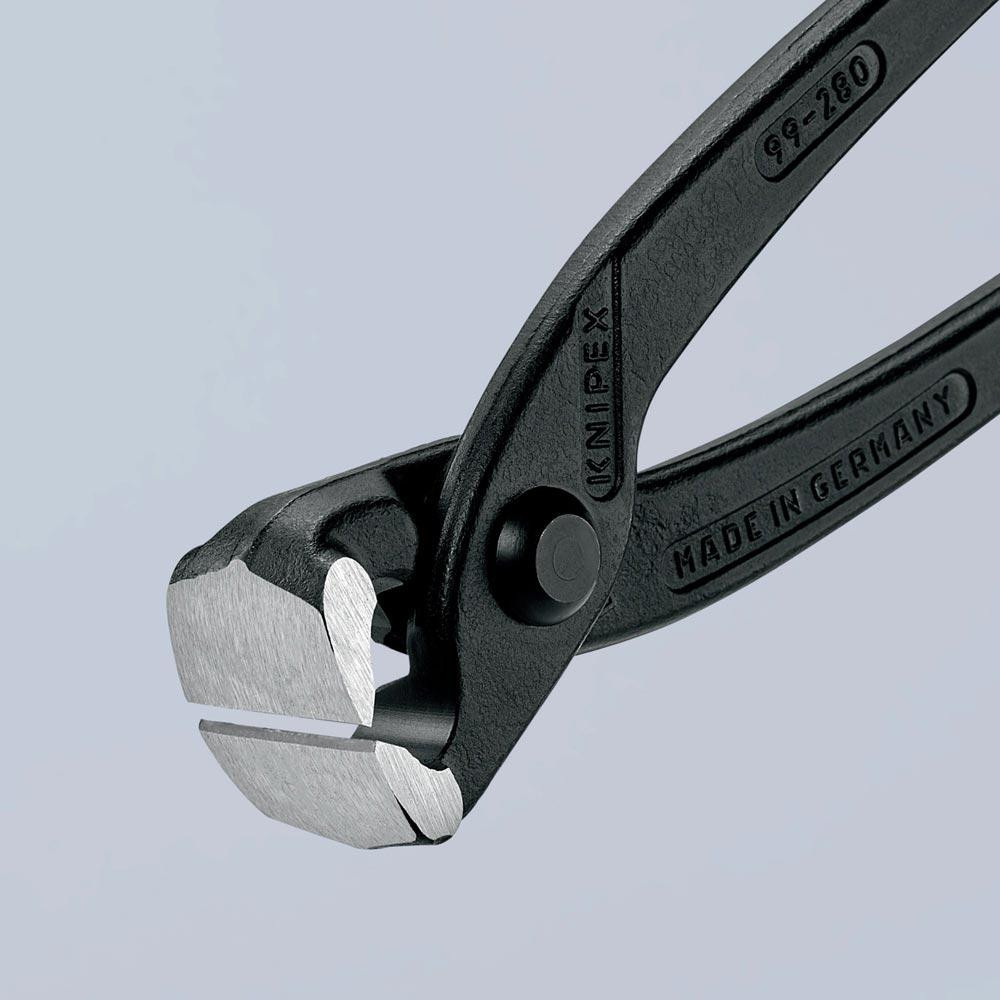 (Rabitz- oder Flechterzange) · zum Verdrillen und Schneiden von Bindedraht von der Rolle in einem Arbeitsgang · Schneiden zusätzlich gehärtet, Schneidenhärte ca. 61 HRC · Spezial-Werkzeugstahl in Sondergüte, geschmiedet, mehrstufig ölgehärtet