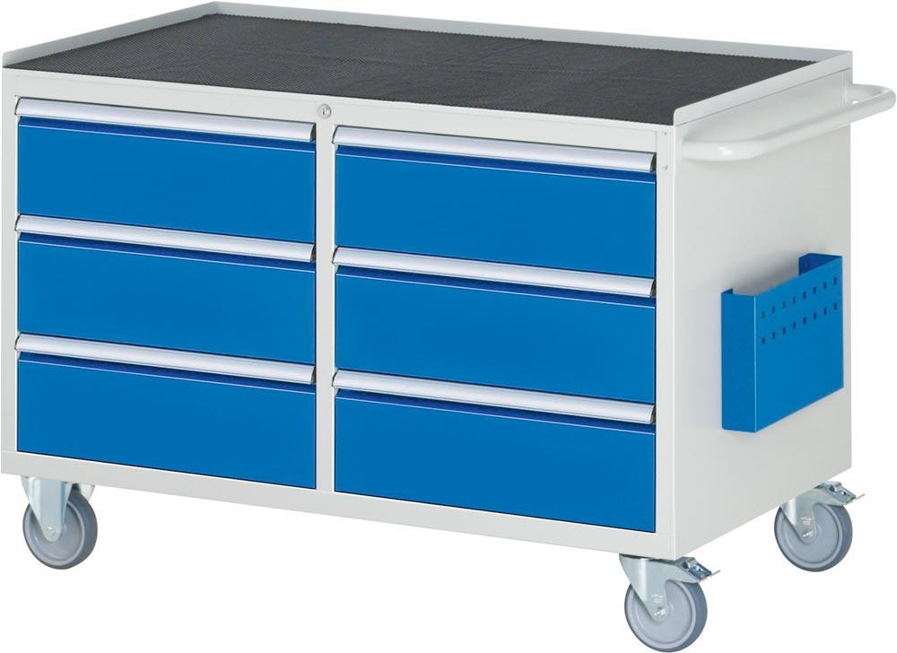 Montagewagen mit Metall Platte 25 mm, BxTxH 1145x650x795 mm, 6 Schubladen 180 mm, RAL 7035 /5010