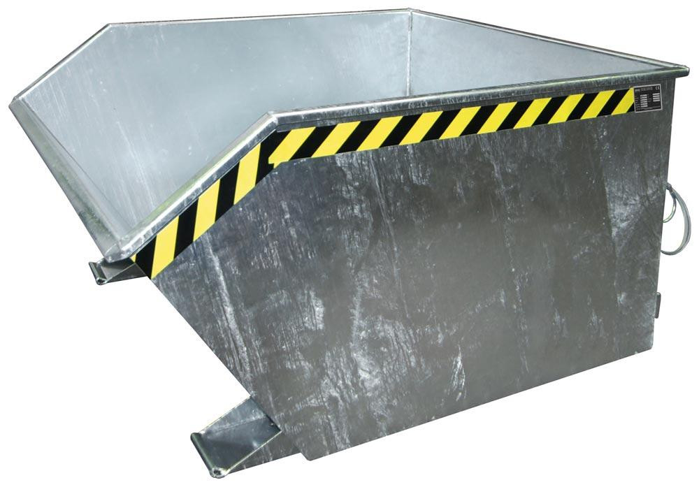 Mulden-Selbstkippbehälter, automatischer Aufrichter, Traglast 1500 kg, LxBxH 1640x1280x780 mm, Vol. 1,00 cbm, verzinkt