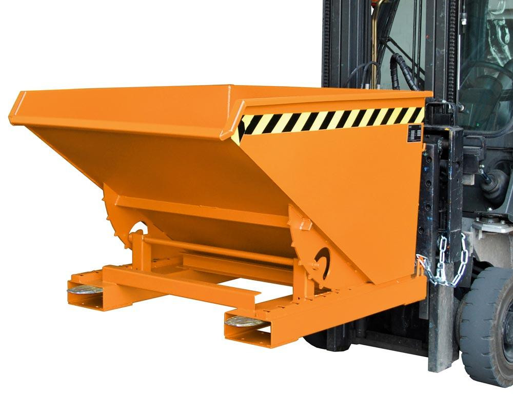 Mulden-Selbstkipper mit Abrollsystem, umlaufender Rand, LxBxH 1260x1070x835 mm, Vol. 0,6 cbm, Traglast 1000 kg, lackiert RAL 2000 gelborange