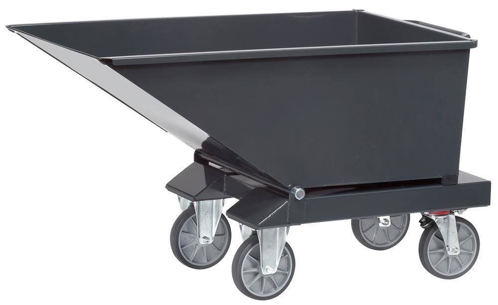 Muldenkipper mit je 2 Lenk- u. Bockrollen, mit Staplertaschen, Vol. 0,25 cbm, LxBxH 1359x713x780 mm, RAL 7016 anthrazitgrau, Schüttkante bündig