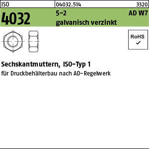 Muttern ISO 4032 5-2, M20, verzinkt, AD W7