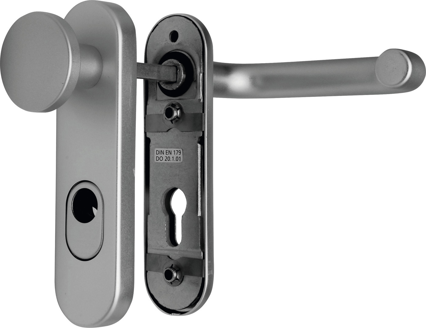 OGRO + DENI Feuerschutz-Sicherheitsgarnitur 3612, F1 Silber, Drückergarnitur, Kurzschild, für Türstärke 44 - 66 mm