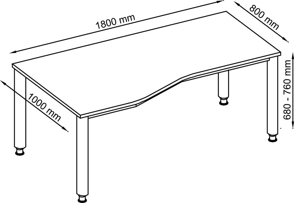 PC-Schreibtisch, BxTxH 1800x800-1000x685-810 mm, höhenverstellbar, 4-Fuß-Gestell, Platten-/Gestellfarbe lichtgrau/silber
