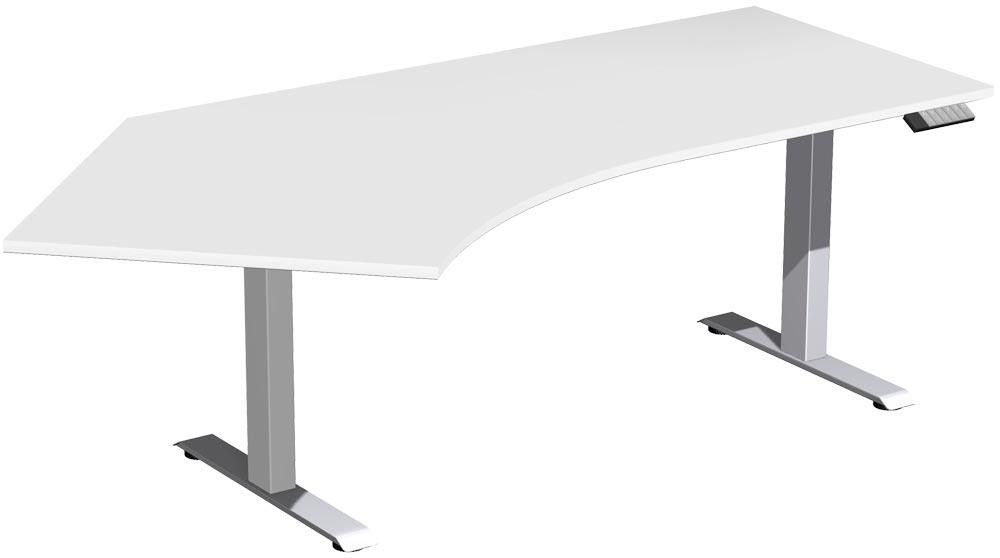 PC-Schreibtisch, elektr. höhenverstellbar, BxTxH 2166x800/1130x630-1280 mm, links, Melamin-Platte 25 mm, lichtgrau/silber