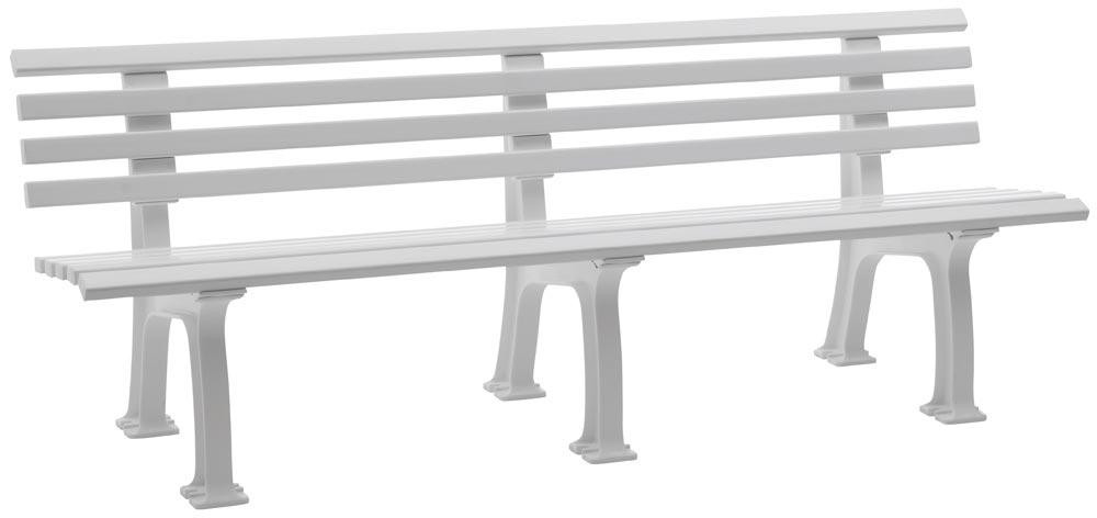 Parkbank aus Kunststoff, mit 3 Füßen, 5 Sitz- und 4 Lehnlatten 50x30 mm, Breite 2000 mm, weiß