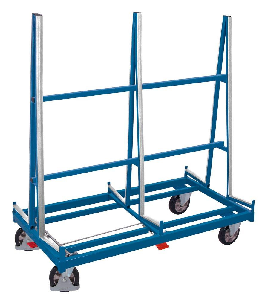 Plattenwagen, zweiseitige Ausführung, Ladefläche LxB 1380x2x270 mm, Außenmaße LxBxH 1380x880x1705 mm, TL 1200 kg, RAL 5010 Enzianblau