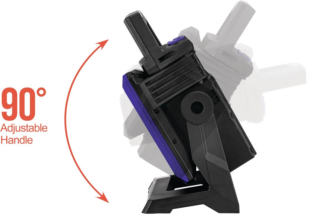 • 8 leistungsstarke SMD LEDs • Einstellbarer Beleuchtungswinkel, vertikal 90 Grad und horizontal 180 Grad • Mit Ladestandsanzeige • Robustes Gehäuse und praktischer Handgriff • Inklusive Powerbankfunktion • Ladezeit: ca. 3,5 h • Mit Li-Ion Akku (14,8 V/5200 mAh), 100-240 V Netzadapter • IP54