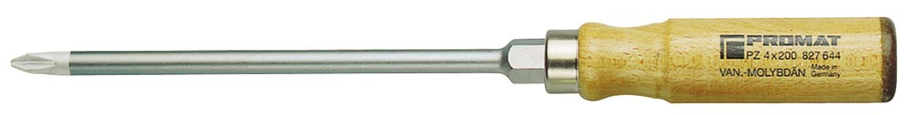 Promat Schraubendreher, für Schrauben mit Kreuzschlitz PZD, Größe 1, Klingenlänge 80 mm, Gesamtlänge 180 mm, Rundklinge, Sechskant-Ansatz, Holzheft