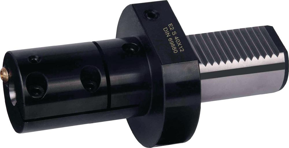 für Bohrstangen · geschlitze Ausführung · Form E2 S · reduziert bzw. verhindert Vibrationen durch Umschlingung der Bohrstange · auch geeignet für vollrunde Bohrstangen mit V-Nut · Halter sind soweit möglich im Schaft durchbohrt · gesichert gegen Herausfallen in den Revolver durch Sicherungsring · geschlitzer Bereich bis 16 mm 4 x D, 20 und 25 mm 3 x D, ab 32 mm 2,5 x D · externe und interne Kühlung möglich · Längeneinstellung bei durchbohrtem Schaft von der Schaftseite möglich · Typ A = durchbohrt