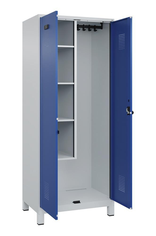 Putzmittelschrank Premium Plus, BxTxH 800x500x1950 mm, 2 Abteile a 400 mm, mit Füßen, Drehriegel, RAL 7035/5010