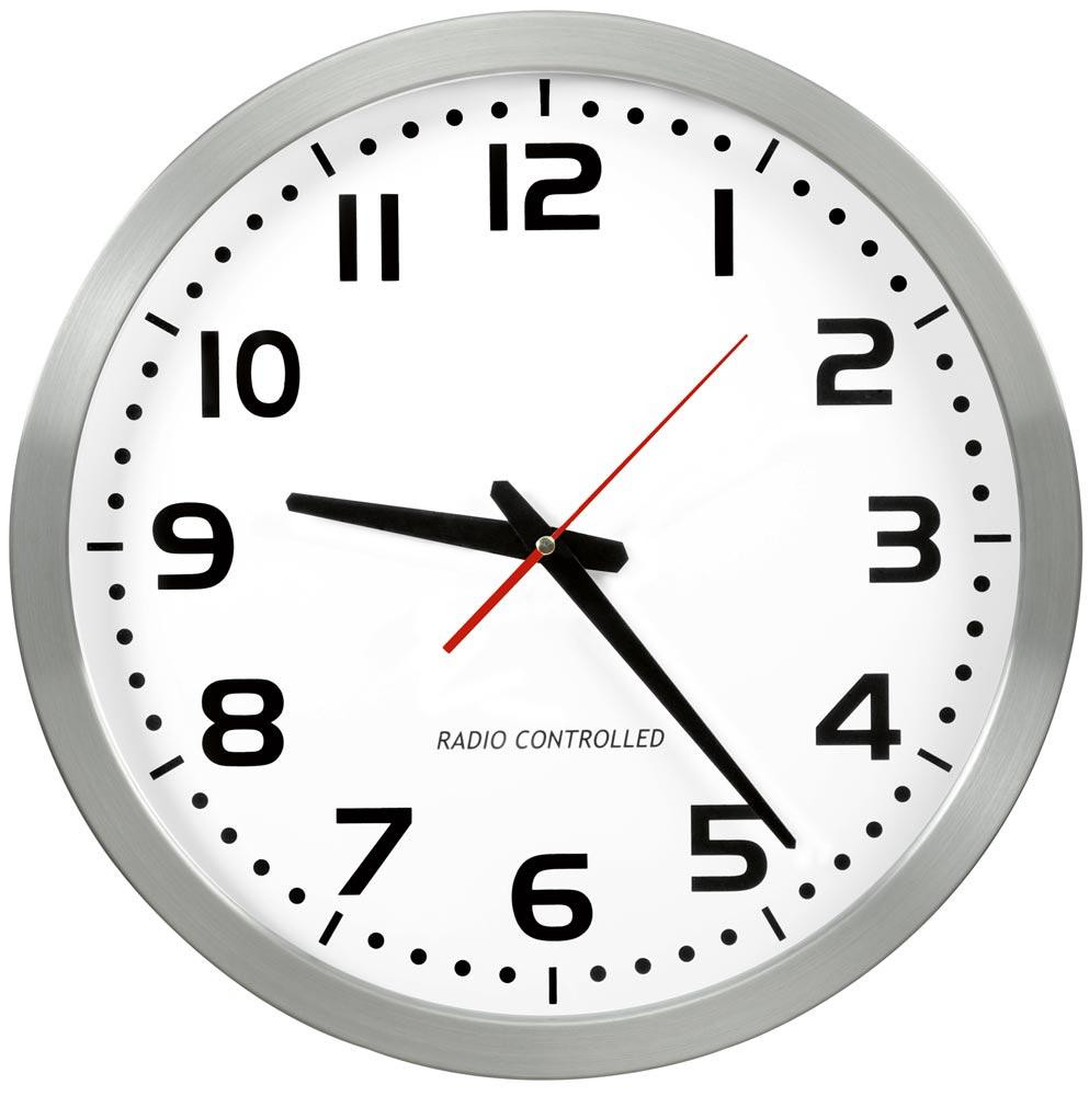 Quarz-Wanduhr, Durchm. 400 mm, Edelstahlgehäuse, Ziffernblatt weiß, arabische Ziffern, inkl. Batterie