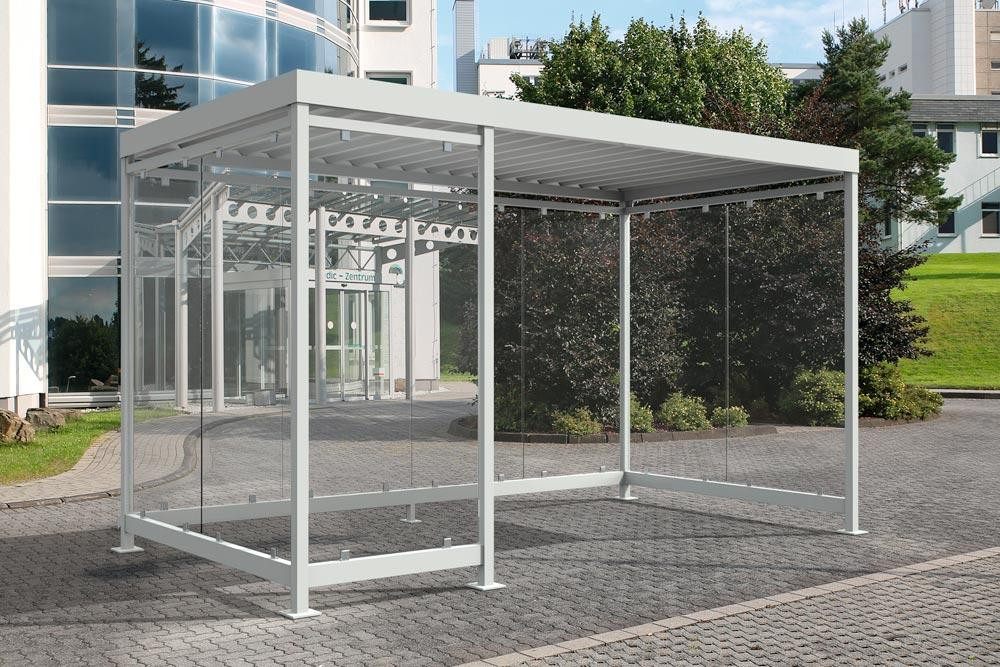 Raucherunterstand, BxTxH 4195x2165x2510 mm, lichte Höhe 2360 mm, ca. 8-10 Personen, farbbeschichtet RAL nach Wahl, fertig montiert