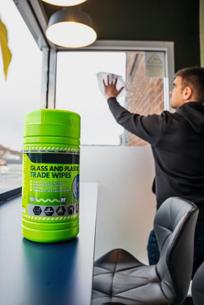 Reinigungstücher (Glas, Kunststoff, Keramik etc.), 1 Dose a 80 Tücher, LxB 250x200 mm, VE 8 Stück