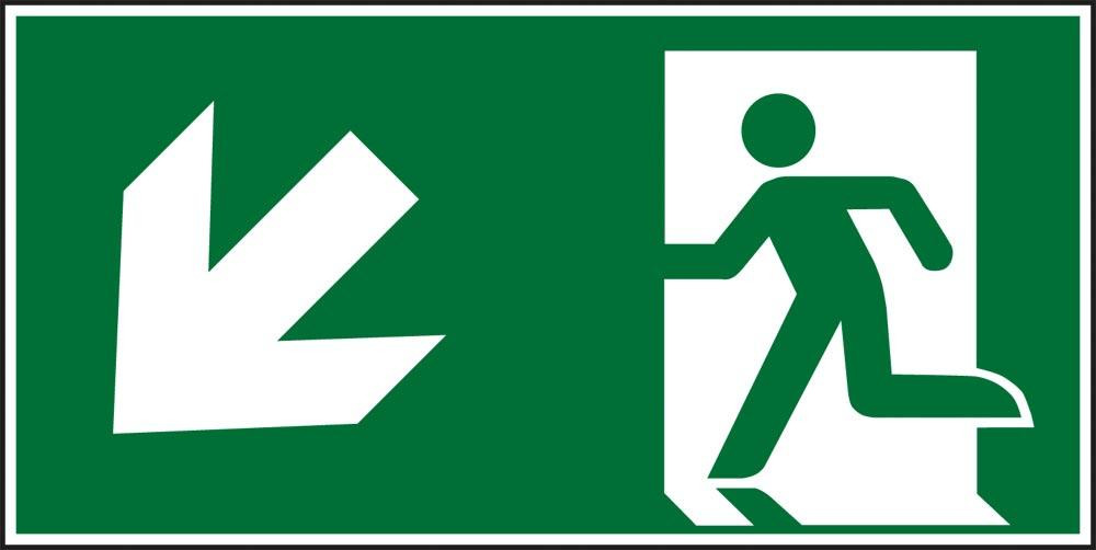 | Ausführung Rettungswegschild | Fluchtweg abwärts links |