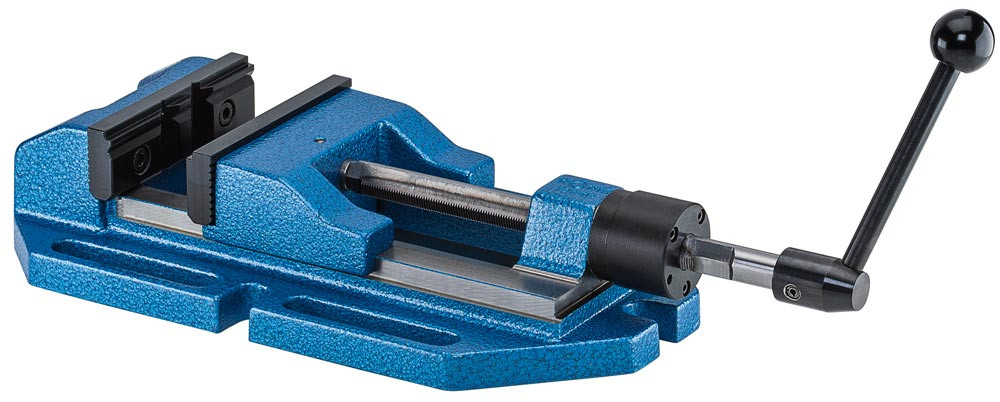 • Körper aus Spezialguss • Einhandbedienung, d. h. Backen-Schnellverstellung und Spannen mit nur einem Hebelgriff • Großer Spannbereich, formschlüssige Verriegelung • Befestigungsmöglichkeiten seitlich und stirnseitig • Lange Führung der beweglichen Backe auch im äußeren Spannbereich • Beide Backen mit Auflagefläche zum Spannen flacher Werkstücke • Spannbacken umkehrbar, eine Seite glatt bzw. mit Längs- und Querprismen, eine Seite gerillt, beidseitig geschliffen