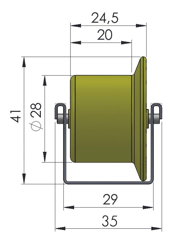Röllchen-U-Leisten, Profil 26x29x26 mm, verzinkt, Kunststoffrolle mit Spurkranz, Durchm. 28/41 mm, Traglast 6 kg/Rolle, Achsabstand 66 mm