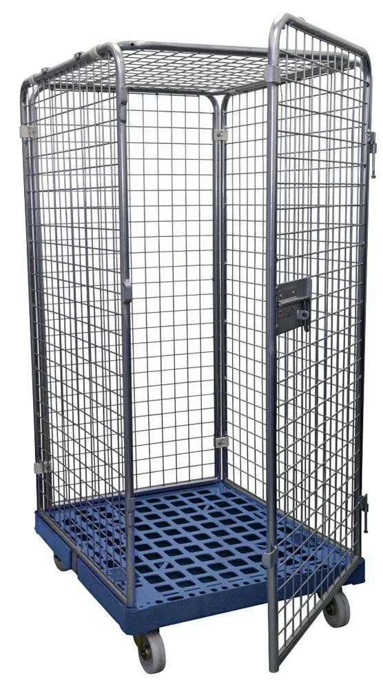 Rollbox mit Drahtgitterwänden, 5-seitig (1 Tür), Nutzhöhe 1350 mm, LxBxH 810x720x1500 mm, Bodenplatte aus HDPE, RAL 5012 lichtblau