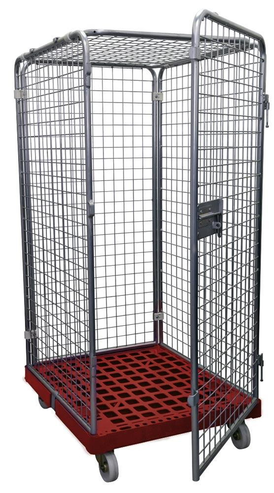 Rollbox mit Drahtgitterwänden, 5-seitig (1 Tür), Nutzhöhe 1585 mm, LxBxH 810x720x1800 mm, Bodenplatte aus HDPE, RAL 3000 feuerrot