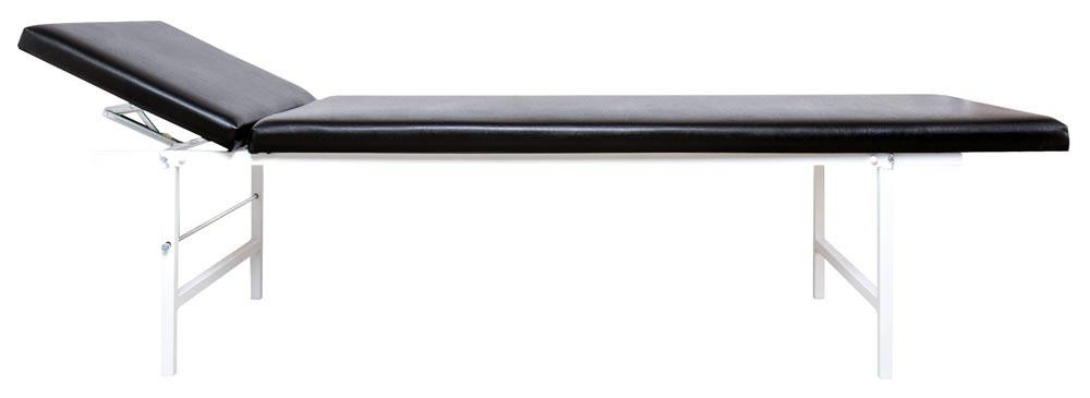 Stabiles Untergestell aus Vierkant-Stahlrohr, pulverbeschichtet ∙ Kopfteil mehrstufig verstellbar ∙ Polster aus ca. 40 mm starkem Qualitäts-Schaumstoff mit gewebeverstärktem Kunstleder-Bezug, an Ecken und Kanten doppelt gelegt ∙ Pflegeleicht und schmutzabweisend ∙ Integrierte Abrollvorrichtung für Ärztekrepp ∙ Ärztekrepp separat erhältlich