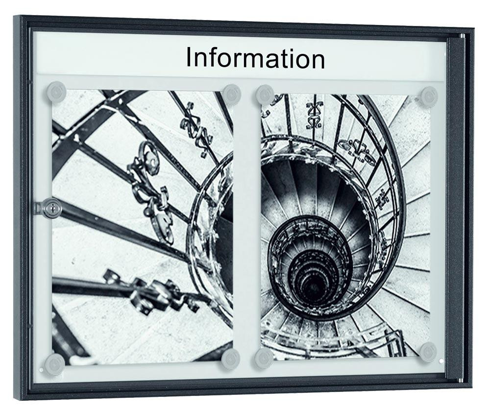 Schaukasten, BxTxH 280x27x380 mm, 1xDIN A4, Aluprofile anthrazit, ESG-Glas, Rückwand weiß, magneth.