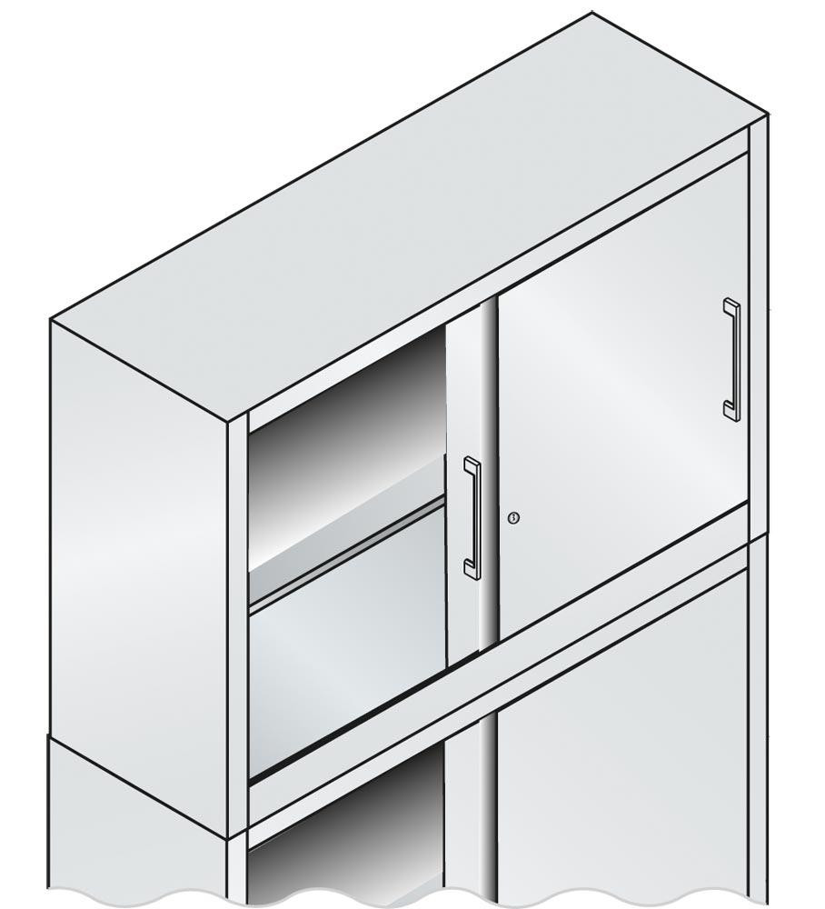 ∙ Verschweißte Stahlblechkonstruktion mit hochwertiger Einbrennlackierung ∙ Schiebetüren mit Spezialkugellagerrollen in stabiler Schienenführung ∙ Aufsatzschränke gleichschließend mit Grundschrank auf Wunsch lieferbar ∙ Verchromter Bügelgriff, Dreh-Druckzylinderschloss inkl. 2 Schlüsseln ∙ In Korpusfarbe lackierte Fachböden im Raster von 15 mm höhenverstellbar · Traglast pro Fachboden 70 kg (bei gleichmäßig verteilter Last)