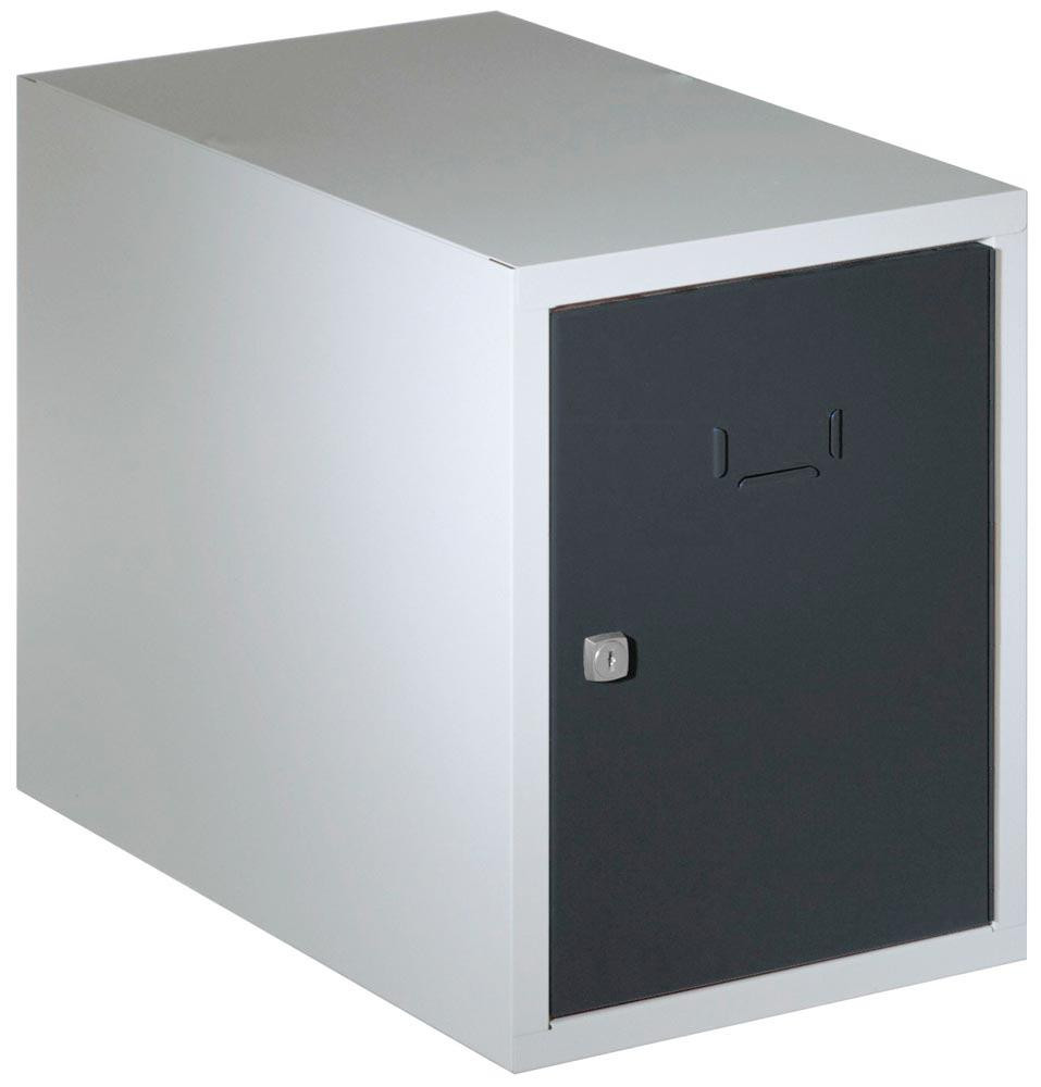 Schließfachwürfel, BxTxH 300x500x380 mm, Tür glatt, Etikettenrahmen, Zylinderschloss, RAL 7035/9005