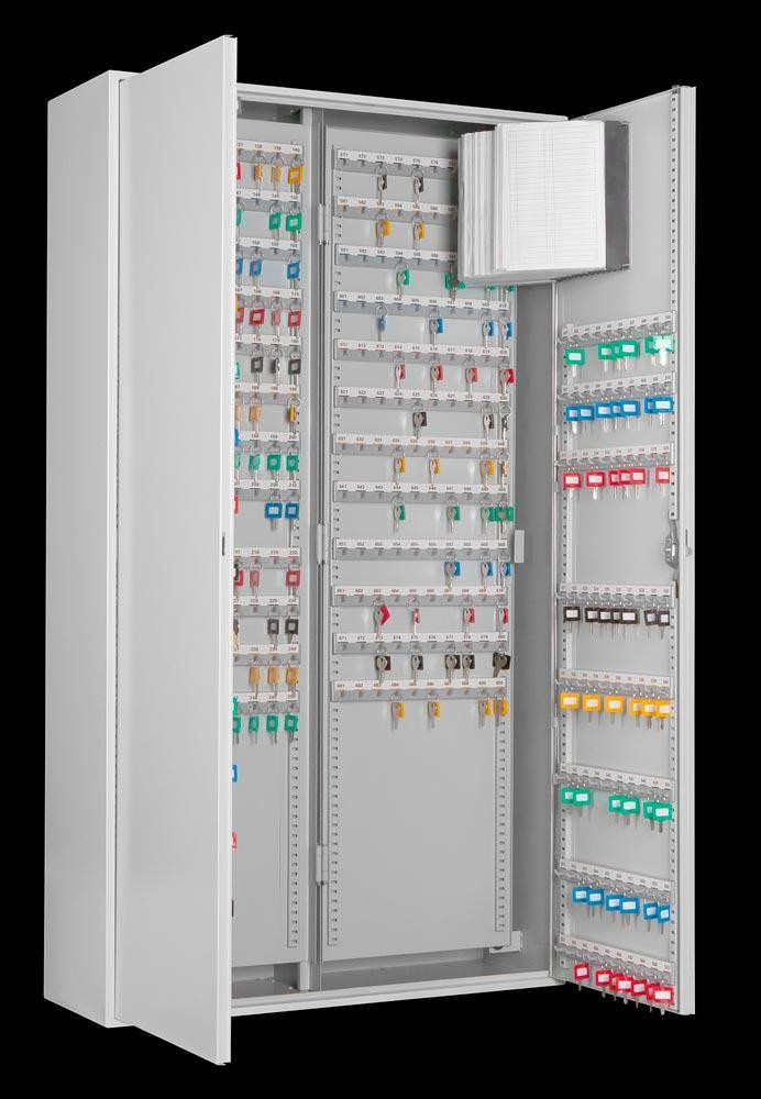 Schlüsselschrank, zweitürig, Stahlblech, Raster-Hakenleisten, 940 Haken, Zylinderschloss, BxTxH 730x250x1300 mm