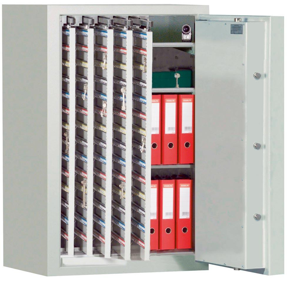 Schlüsseltresor, Sicherheitsstufe Kl. I, 30 Min. Feuerschutz, 440 Haken, 1 Fachboden, BxTxH 500x420x1000 mm, RAL 7035 lichtgrau