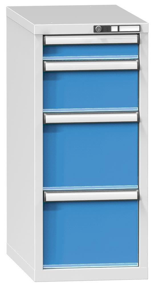 Schubladenschrank, 4 Schubladen: 100, 200, 2x300 mm, BxTxH 442x753x990 mm, RAL 7035/5012