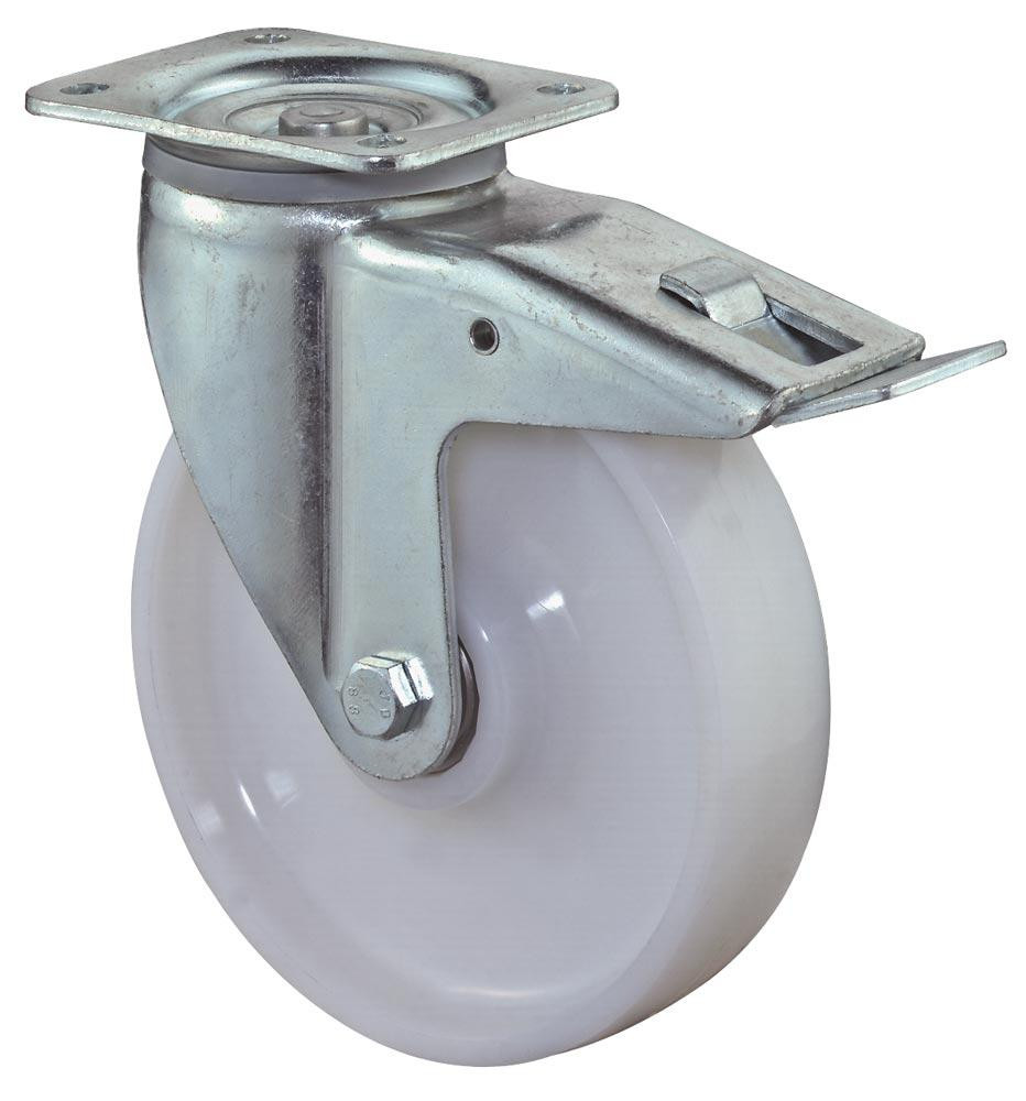 Schwerlast-Lenkrolle m. Festst., Kunststoff weiß, Durchm. 150 mm, Traglast 800 kg, Kugellager, Anschraubplatte