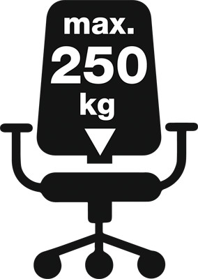 · Belastbar bis 250 kg · Stahl-Fußkreuz für hohe Stabilität und Langlebigkeit · Höhenverstellung via Gasfeder · Anti-Schock-System - verhindert das plötzliche Zurückschnellen der Rückenlehne beim Verstellen