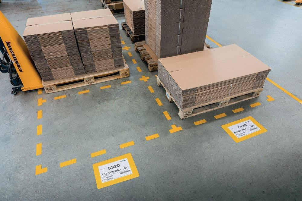 selbstklebendes Bodenmarkierungsfenster zur Kennzeichnung durch Papiereinlagen A4 · wieder ablösbar · einfache Anbringung: Papier wird unter die Beschriftungstasche gelegt und bleibt durch die Rundumverklebung geschützt · anwendbar im Hoch- und Querformat