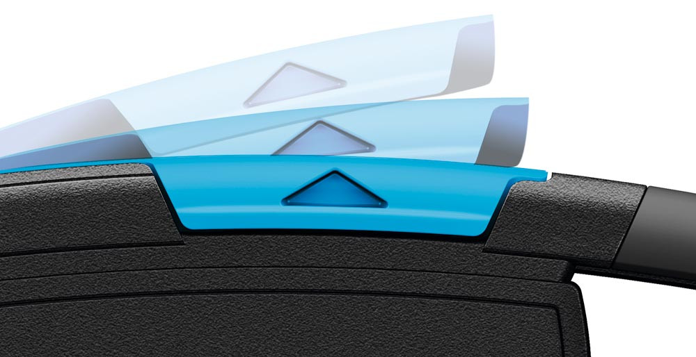Spezialist für Folie und Umreifungen · aus glasfaserverstärktem Kunststoff · verdeckt liegende Klinge für höchste Arbeitssicherheit und maximalen Warenschutz · neues Design und eine deutlich verbesserte Ergonomie inkl. Soft-Grip · neue 4-fach nutzbare Qualitätsklinge · wendbarer Klebebandritzer mit zwei Ritztiefen (5 mm/3,5 mm) · vereinfachter und besonders sicherer Klingenwechsel ohne Werkzeug · für Rechts- und Linkshänder
