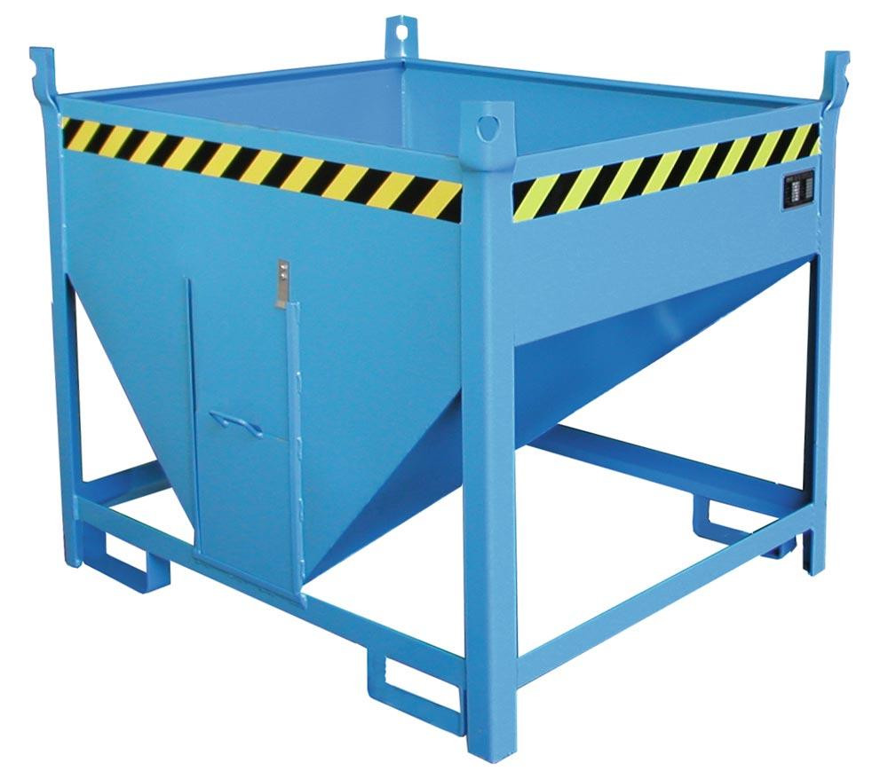 Silobehälter, LxBxH 1000x1200x1025 mm, Vol. 0,5 cbm, Traglast 750 kg, stirnseitiger Schieberverschluss, lackiert RAL 5012 lichtblau
