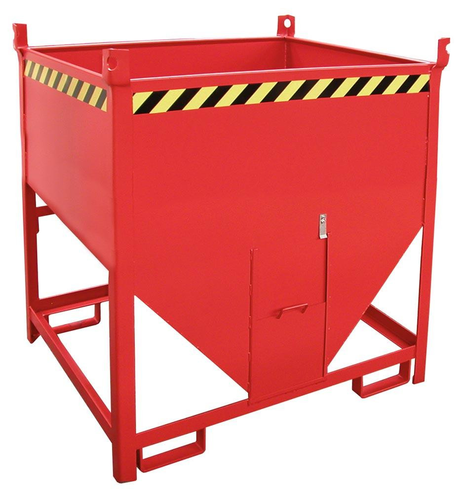 Silobehälter, LxBxH 1000x1200x1260 mm, Vol. 0,75 cbm, Traglast 1000 kg, stirnseitiger Schieberverschluss, lackiert RAL 3000 feuerrot