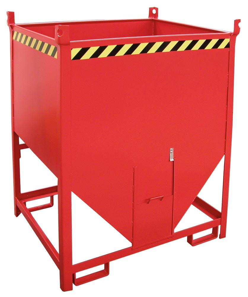 Silobehälter, LxBxH 1000x1200x1495 mm,Vol. 1,0 cbm, Traglast 1500 kg, stirnseitiger Schieberverschluss, lackiert RAL 3000 feuerrot