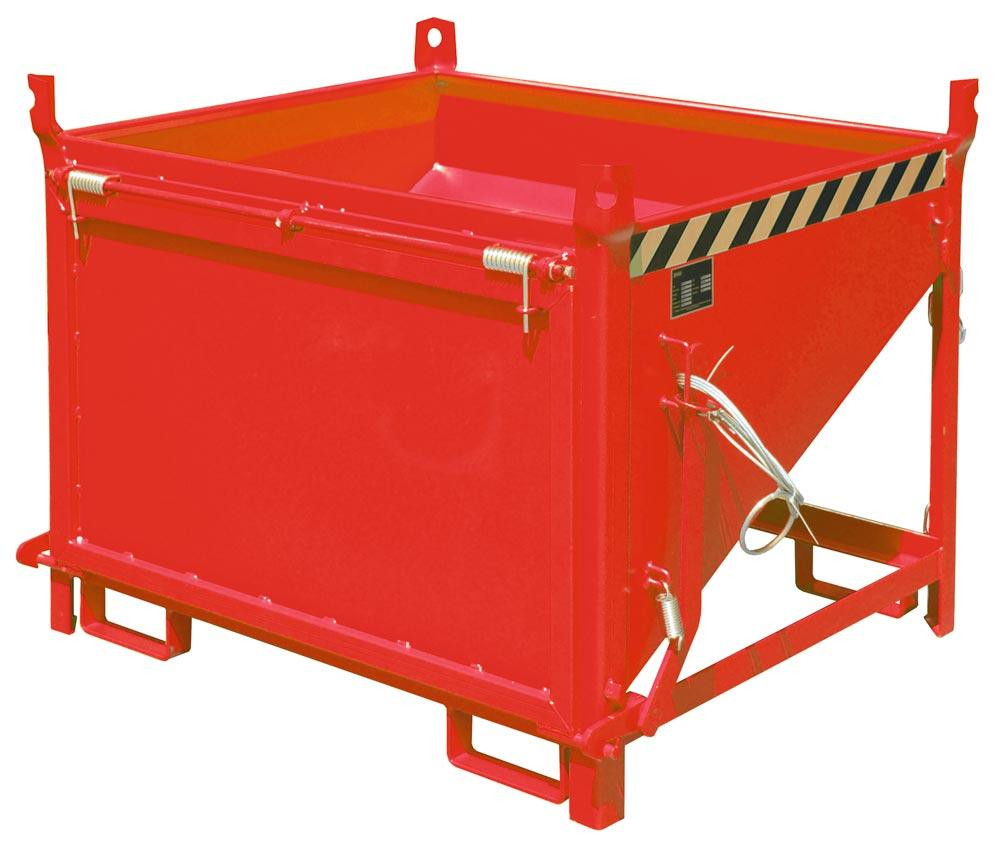 Silobehälter, LxBxH 1000x1200x935 mm, Vol. 0,5 cbm, Traglast 750 kg, stirnseitige Klappe, lackiert RAL 3000 feuerrot