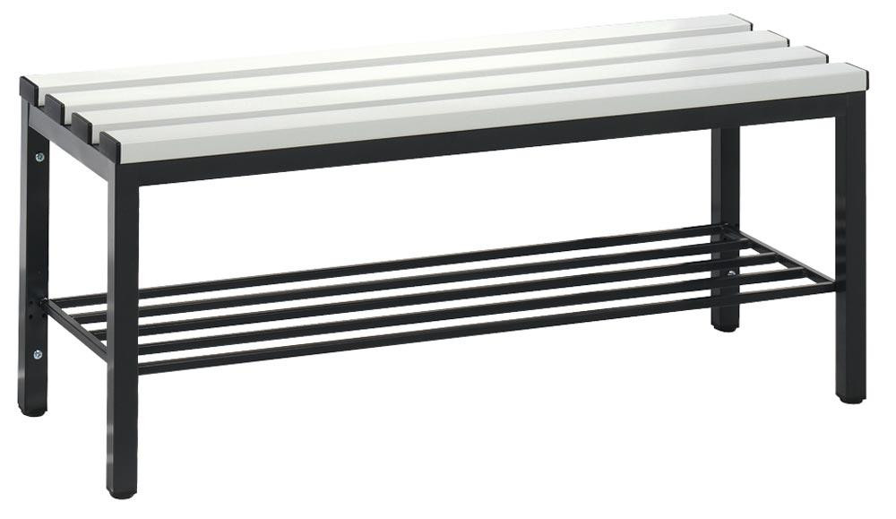 Sitzbank, Kunststoffleisten, mit Schuhrost, TxH 353x420 mm, Länge 1000 mm, RAL 7021