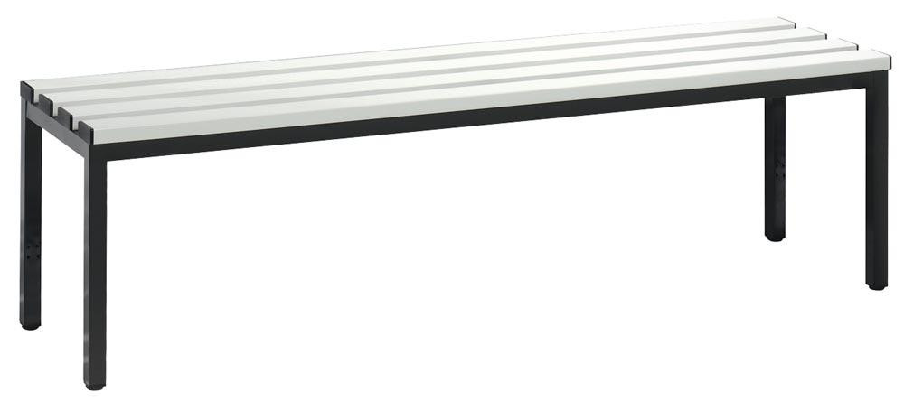 Sitzbank, Kunststoffleisten, ohne Schuhrost, TxH 353x420 mm, Länge 1500 mm, RAL 7021