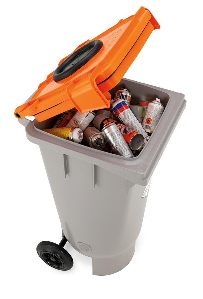 Leere Spraydosen niemals über Restmüll oder zusammen mit anderen Abfällen entsorgen!